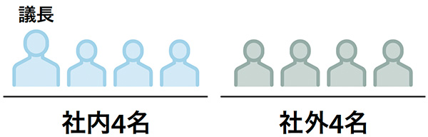 さらに、より透明性の高い経営を目指し、取締役のうち3分の1以上を独立した社外取締役とする方針としており、取締役8名のうち、経営者としての経験を持つ者を含む4名を独立した社外取締役として選任しています。