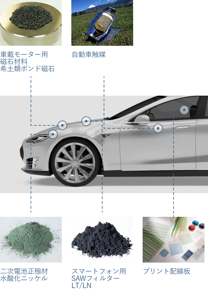 現代社会をあらゆる面で支えている金属材料技術。最先端の電子機器に使われる部品や低炭素社会実現のカギとなる二次電池など、世の中で使われるさまざまな製品に、当社が作り出す電池材料・機能性材料が活用されています。金属に新しい価値を与え、暮らしの進化を支えていく。それが住友金属鉱山の材料事業です。