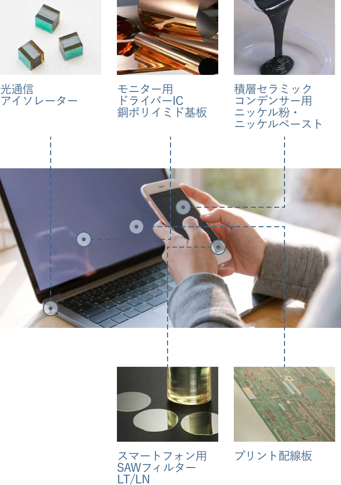 当社のコア技術を活かした収益力のある製品ポートフォリオを構築しており、需要が高まる環境・エネルギー関連、情報通信分野の製品に注力しています。
